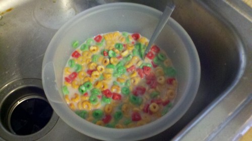 2. Was he running late and didn’t have time to eat approximately 5 lbs of Fruit Loops?
